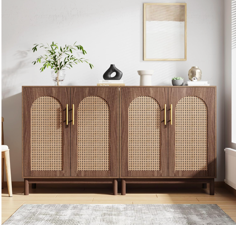 Tribesigns Set of 2 Rattan Sideboard Buffet Cabinet